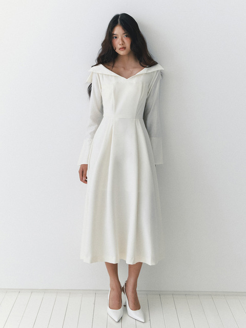 [가니송] 와이드 카라 플레어 원피스_아이보리