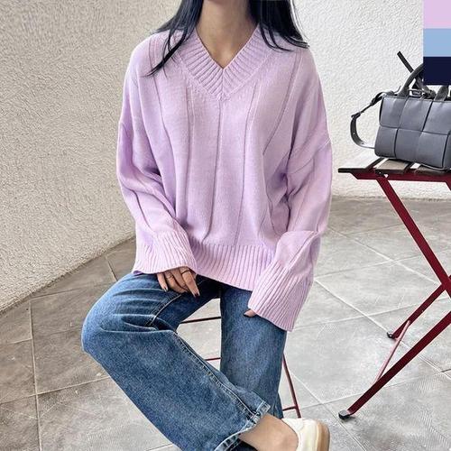 [에이치플러스몰]2LUND 5036 여자 오버핏 브이넥니트 브이넥니트 가오리 하프 니트 l 박시 가디