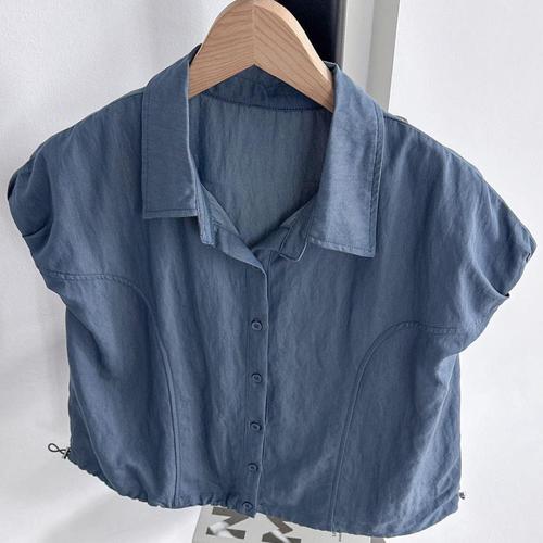 [옷자락]여성 오버사이즈 스트링 가오리 반팔 셔츠 카라형