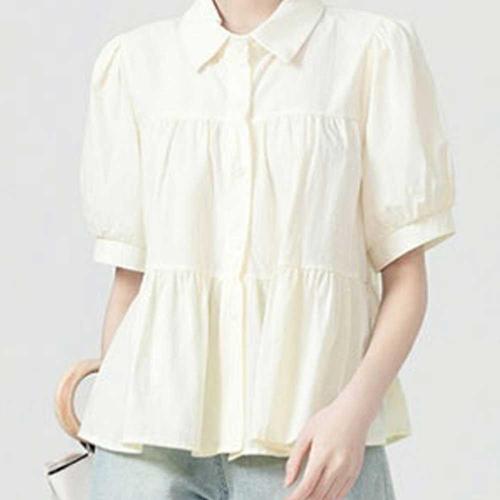 [모노무드]모노무드 여성 블라우스 반팔 퍼프 카라 가오리핏 셔츠 러블리
