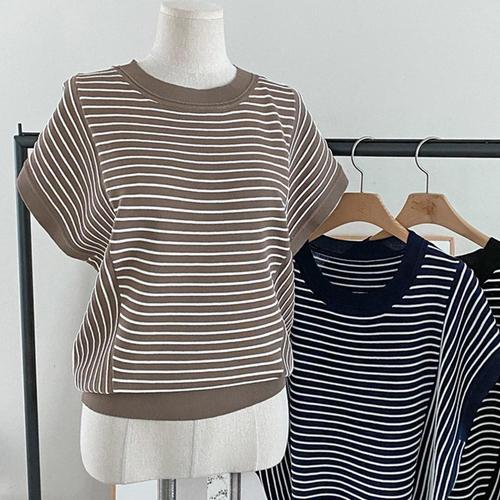 [샵앤]여성 라운드넥 단가라 가오리핏 반팔 니트 티셔츠 DGB-WKN-4555-브라운