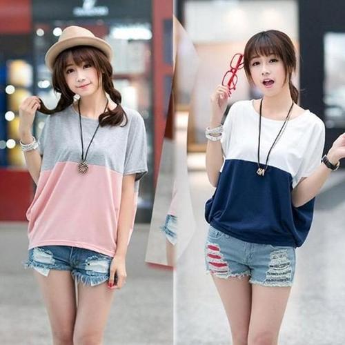 [셀러허브_여성트랜드패션]ONM 배색 하프 캐주얼 가오리 반팔티셔츠