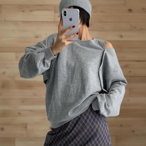 [신상오픈런]여자 버튼 가오리핏 어깨트임 투웨이 볼레로 맨투맨