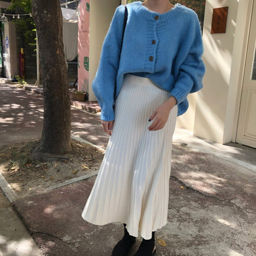지디오 여성 니트 롱 스커트 2개 세트 도톰하고 부드러운 밴딩 치마 루즈핏 플레어 무지 간절기