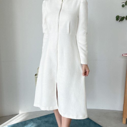 여자 봄 가을 겨울 트위드 라운드 플레어 민소매 나시 롱원피스 모임룩 하객룩 오피스룩 결혼식