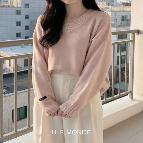 [유아몽드]브이넥 여성 스웨이터 겨울 가을 루즈핏 니트티 6컬러