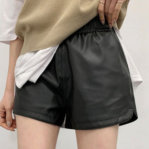 [다잇템][다잇템] 여자 다크 모조가죽 레더 고무줄 레더팬츠 짧은 반바지_14720641_588872