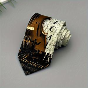 TEMU 1개 남성용 클래식 바이올린 프린트 넥타이 - 음악 노트 & 바이올린 디자인의 세련된 폴리에스터 넥타이, 형식적인 셔츠용, 갈색 & 검정 색상, 바이올린 액세서리