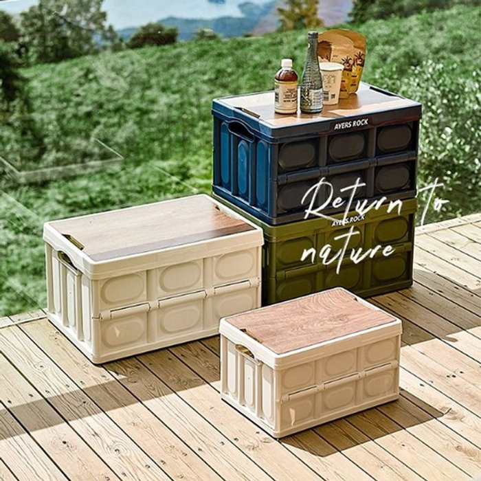 [XB84M232]감성캠핑 폴딩박스 55L 대용량 우드 캠핑 박스