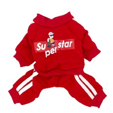 코코스튜디오 강아지 슈퍼스타 기모 츄리닝 올인원, 레드, 1개