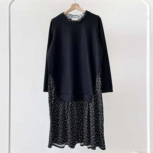 [다잇템][다잇템] 여성 보온 프릴넥 롱 큰사이즈 꽃무늬 검정 원피스_23943211_588872