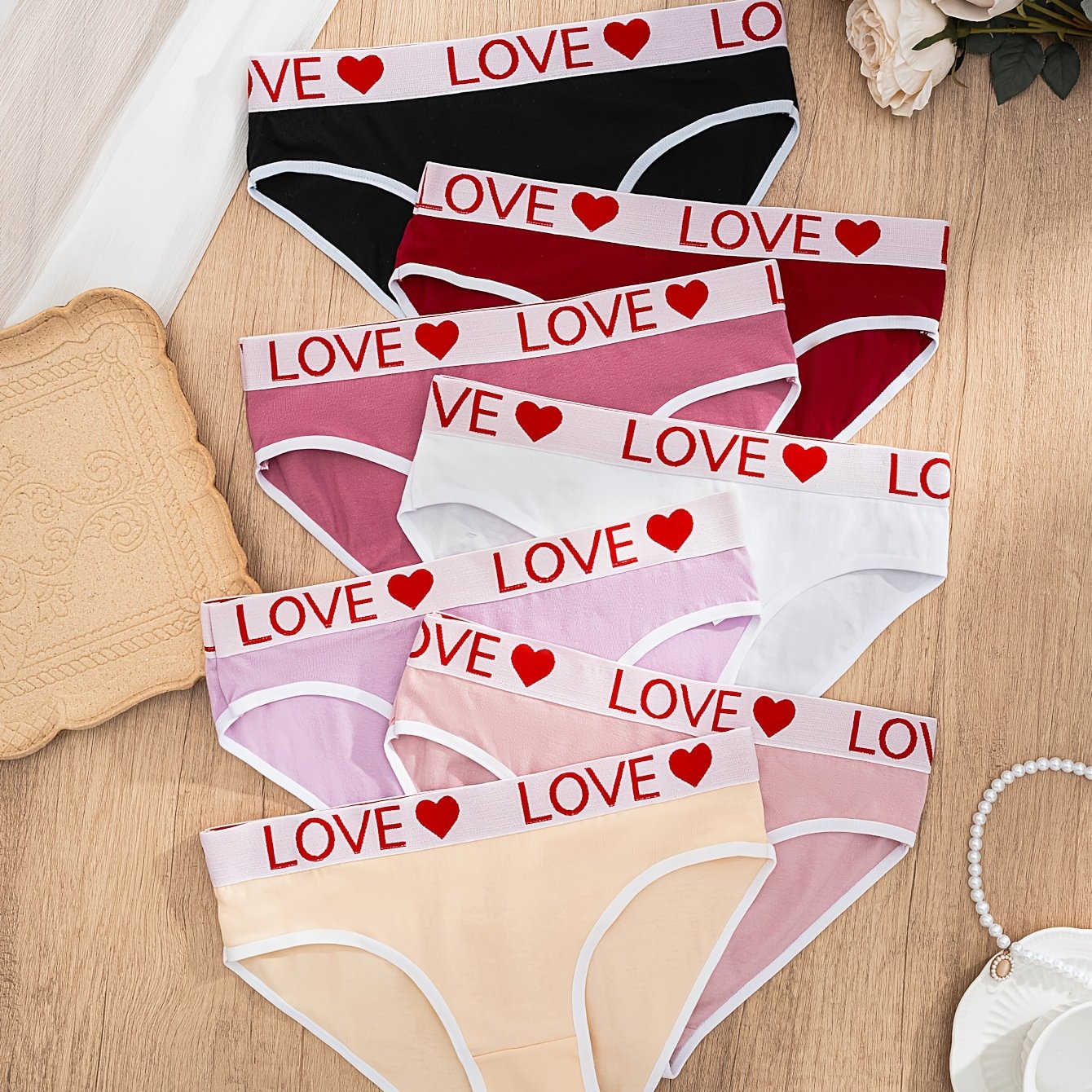 TEMU 7팩 여성용 팬티 LOVE 리본 쉬운 단색 속옷