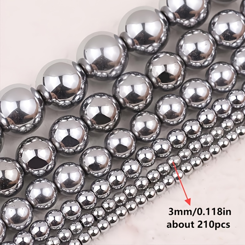 TEMU 2/3/4/6/8/10mm 실버 블랙 옵시디언 폴리쉬드 라운드 비즈 헤마타이트 스페이서 비즈, DIY 핸드메이드 팔찌 목걸이 귀걸이 액세서리 장식용 신발 소재, 변색 없는 보석 공예 재료