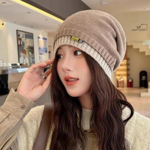 [셀러허브_여성트랜드패션]Rly 레이어드 라벨 패치 여성 겨울 숏 니트 비니 모