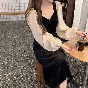 [르뚜앙]리보솜 블랙 쉬폰 랩 키작녀 미니 원피스 봄 가을 결혼식 하객룩 오피스룩 연말파티룩