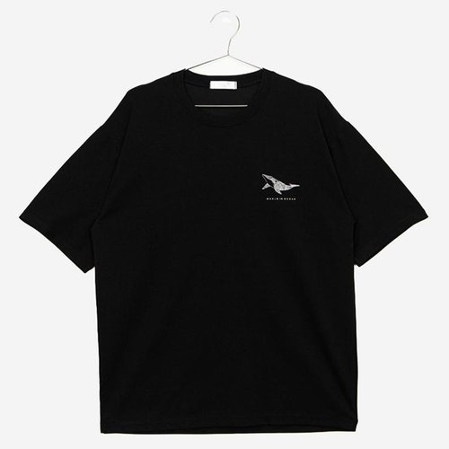 남자 데일리 베이직 박시 고래 반팔 티셔츠 RB4-TSH-Q040-블랙