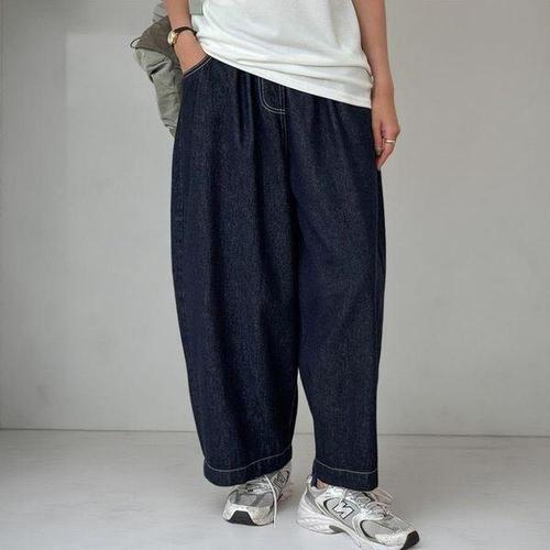 [다잇템]남자 와이드 배기핏 카고데님 고무줄 청바지