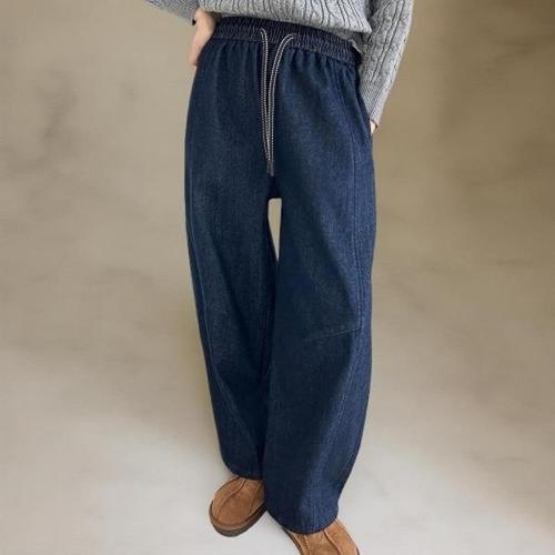 [다잇템_패션]여성 넓은 리본 MAXI 고무줄 단가라 데님팬츠