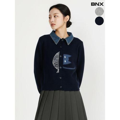 [비엔엑스]여성 데님 카라 고양이 가디건