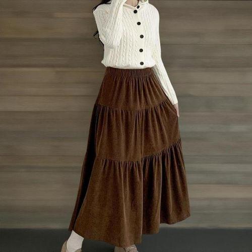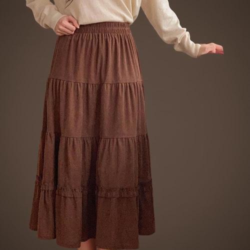 [신상오픈런]여자 로맨틱 골덴치마 셔링 프릴 캉캉 가을 롱스커트