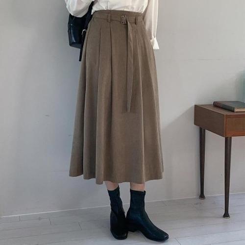 여성 백밴딩 골덴 롱스커트(벨트set)