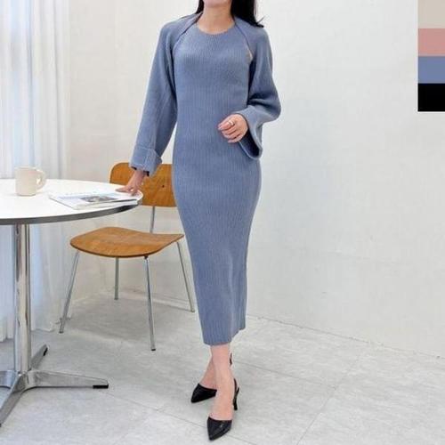 [셀러허브_여성트랜드패션]Rly 1062 롱원피스볼레로세트 여자슬림핏 골지니트