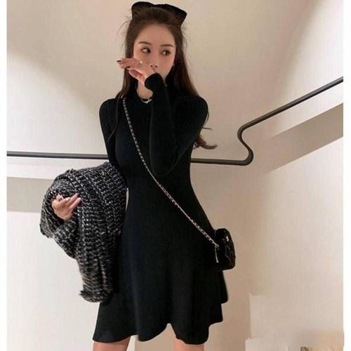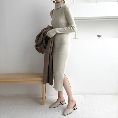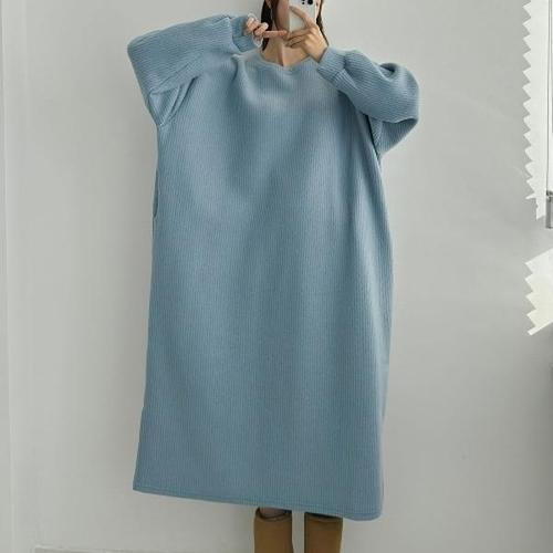 목폴라 니트원피스 가을 겨울 원피스 H라인 터틀넥 골지 여성 롱니트 OFDJ-LD4