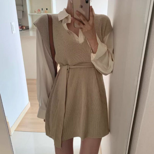 트위드 원피스 베이직 쉬폰 골지 셔츠 롱니트 WFKNXNT