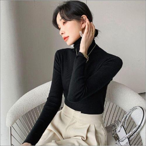 여성 슬림 골지니트 목폴라 터틀넥 티셔츠 하이넥 3색 WFKZVKU