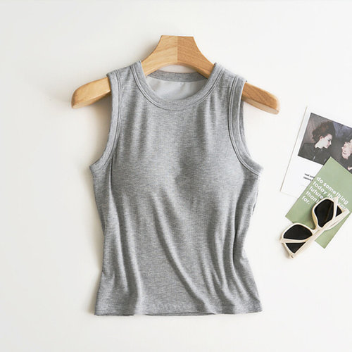 [다잇템][다잇템] 여자 라운드 브라탑 SS 단추 골지 컷오프 패드 끈나시_16597979_588872