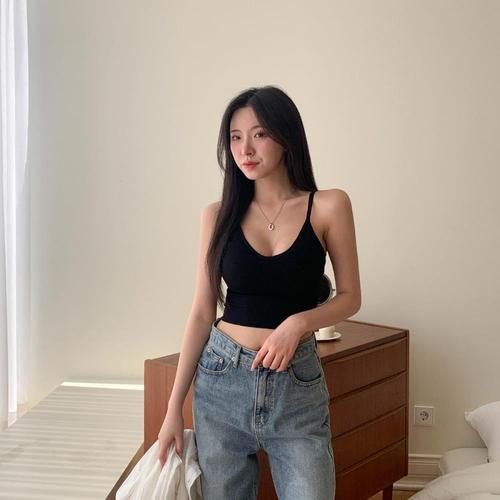 [셀러허브_여성트랜드패션]ONM 여성 골지 끈 조절 브라탑 크롭 나시 슬림핏 데일리