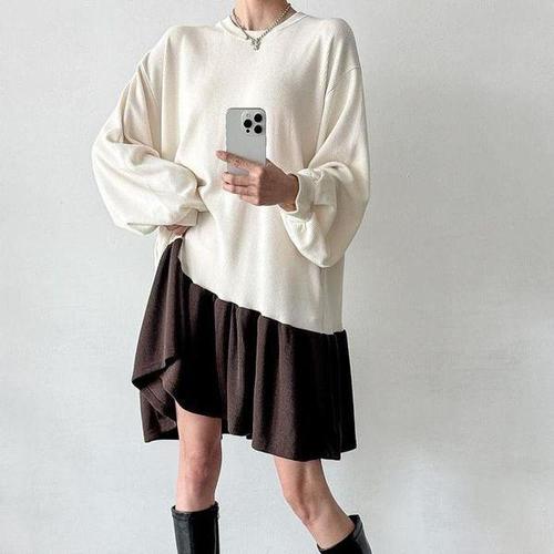 [다잇템_패션]여자 벌룬 큰사이즈 투컬러 FW 골지 미니원피스