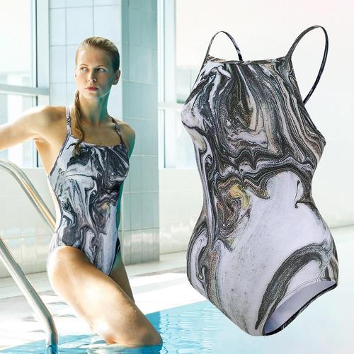 TEMU 마블 프린트 우아한 2조각 수영복, V 넥 고스트레치 원피스 수영복 및 커버업 사롱 스커트, 여성 수영복 및 의류