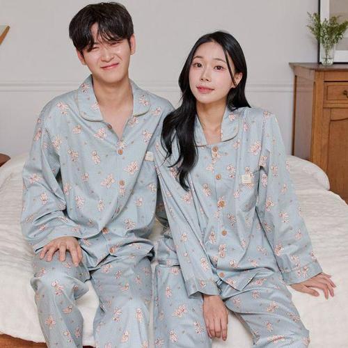 [갤러리아] 비비안 귀요미 곰돌이프린트 폴리기모 커플잠옷 WP8877A/MP8877A