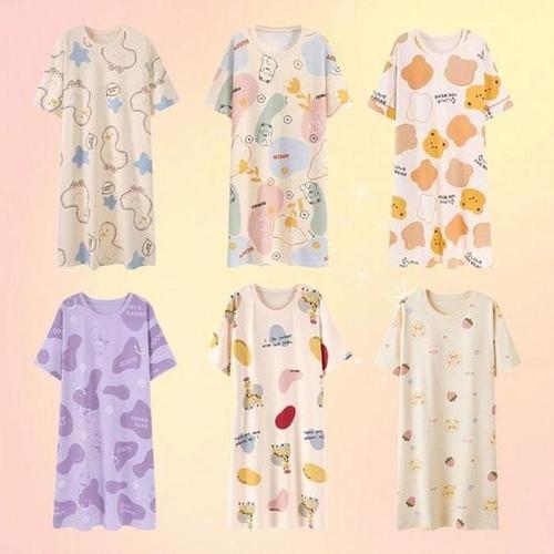 [쿠비카]귀여운 곰돌이 반팔 원피스 여성잠옷 W300