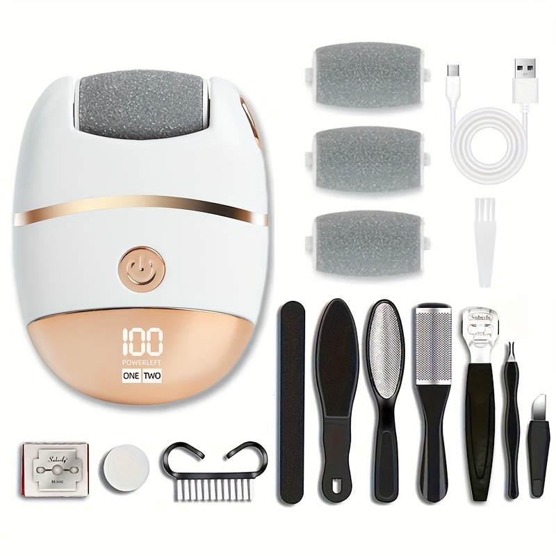 TEMU 미구안 전동 발 및 제거기 그라인더, 3/10피스 페디큐어/매니큐어 세트, LCD 화면, 2단계 속도 조절 (-), 500mAh 배터리, 두꺼운 발톱용 휴대용 발 파일