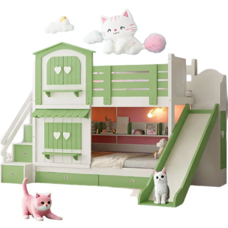 럭셔리 성 공주 침대 단단한 나무 어린이 침대 비밀 베이스 자매 방