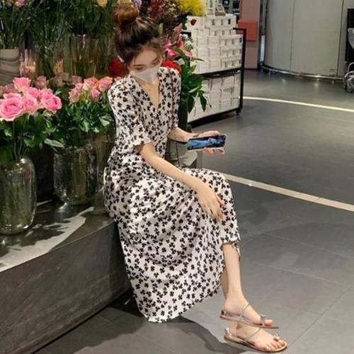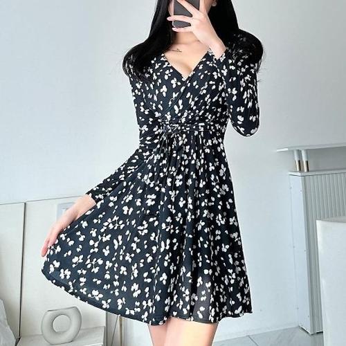 [신상오픈런]|KMO4428|디시스 플레어 V넥 원피스 여성 미니 귀여운 꽃_18170156_597559
