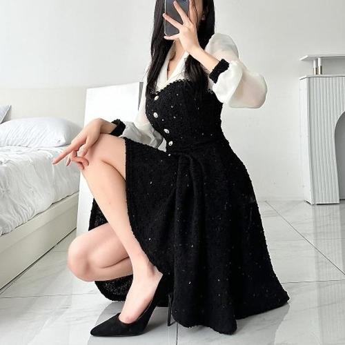 사랑스러운원피스 롱 귀여운원피스 트임 여성 기장 밑단 원피스