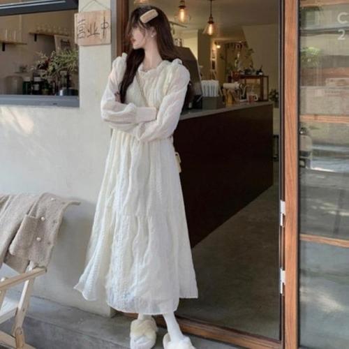 [신상오픈런]|CMO444F|슬블리 긴원피스 레이스장식 여성 크림 여리여리 귀여운_18171402_597559