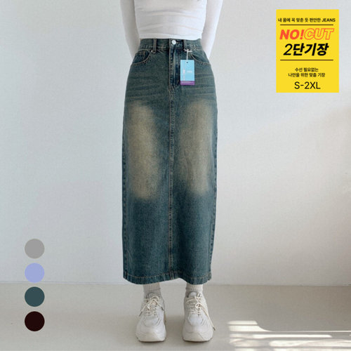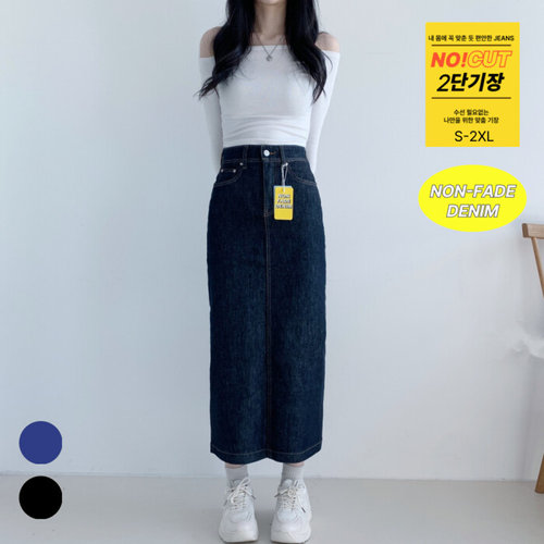 포인 / 논페이드 데님 생지 롱스커트 2단기장