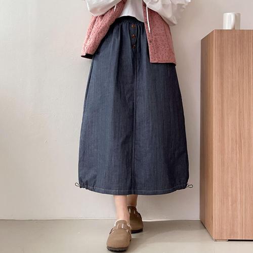 [옷자락] 여성 벌룬 스트링 투웨이 A라인 밴딩 데님 롱스커트
