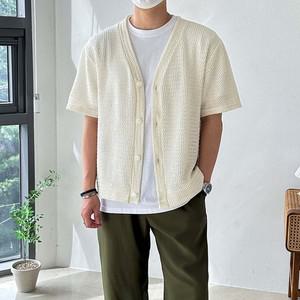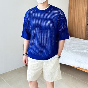 [에이치플러스몰]여름 오버핏 반팔 그물 니트 시스루 브이넥 루즈핏 펀칭