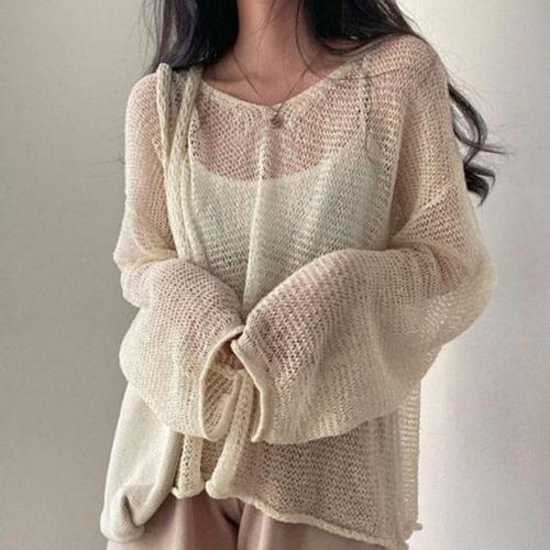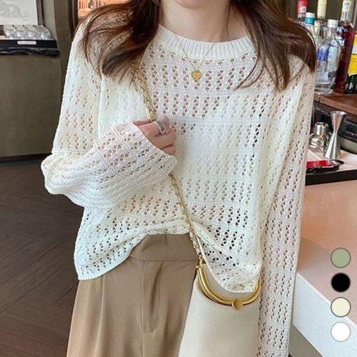 [에이치플러스몰]시스루망사니트 여름니트 긴팔 그물 여름 시스루