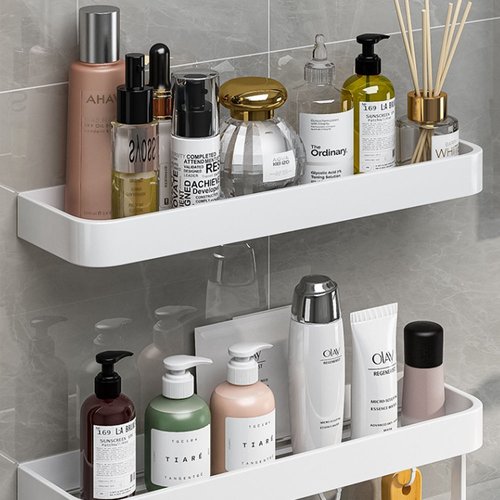 욕실선반 무타공 세면대선반 일자 접착식 화장실선반 정리대 화이트 K669