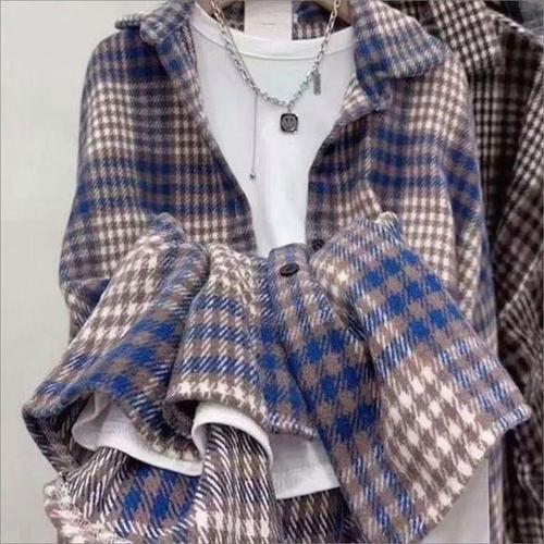 [셀러허브_여성트랜드패션]Rly 체크셔츠 여성 기모 모직 남방 오버핏 겨울셔츠
