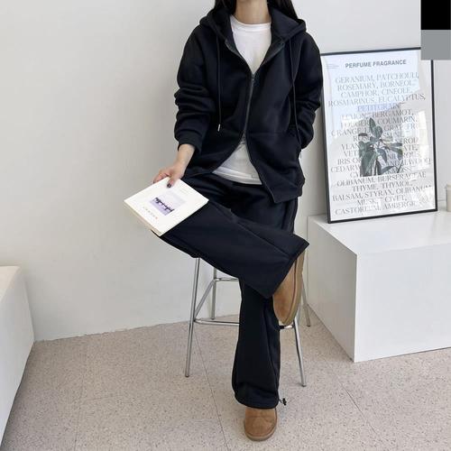 [옷자락] 여성 기모 투웨이 오버핏 후드 집업 와이드 팬츠 세트