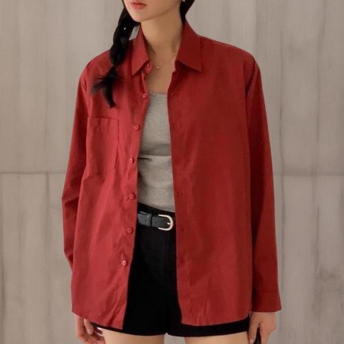 [신상오픈런]여성용 기본 면 셔츠 단색 코튼 데일리 스타일