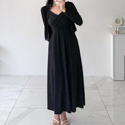 글램핏 / 꼬임 볼레로 민소매 나시 슬림 롱 원피스 세트 4컬러
