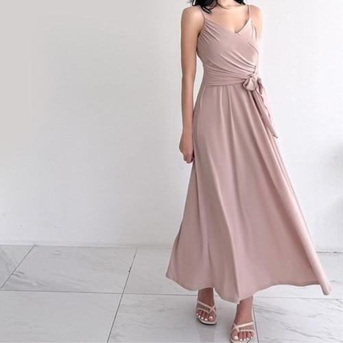 [신상오픈런]여성 플레어 롱 원피스 스트랩 어깨끈 꼬임 디자인